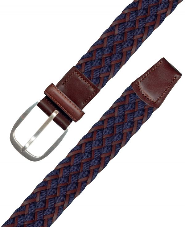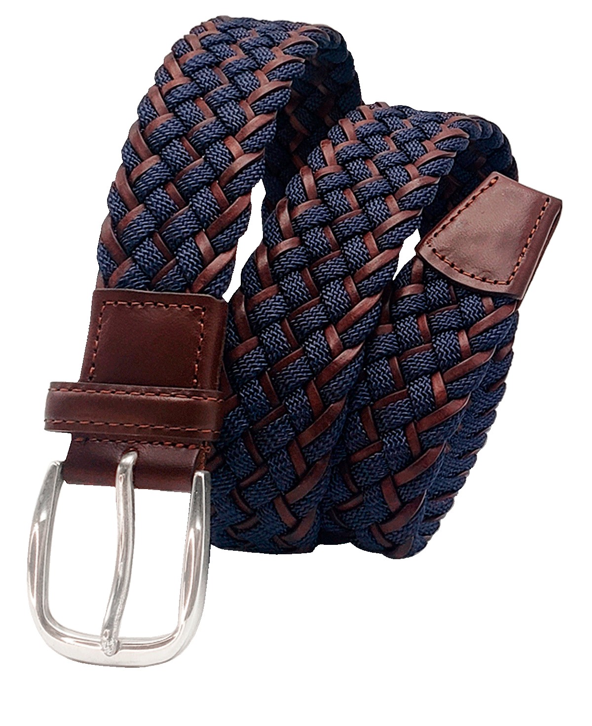 Rigid braided belt in 35mm mixing marine cord and cognac cow leather. English Silver plated buckle.