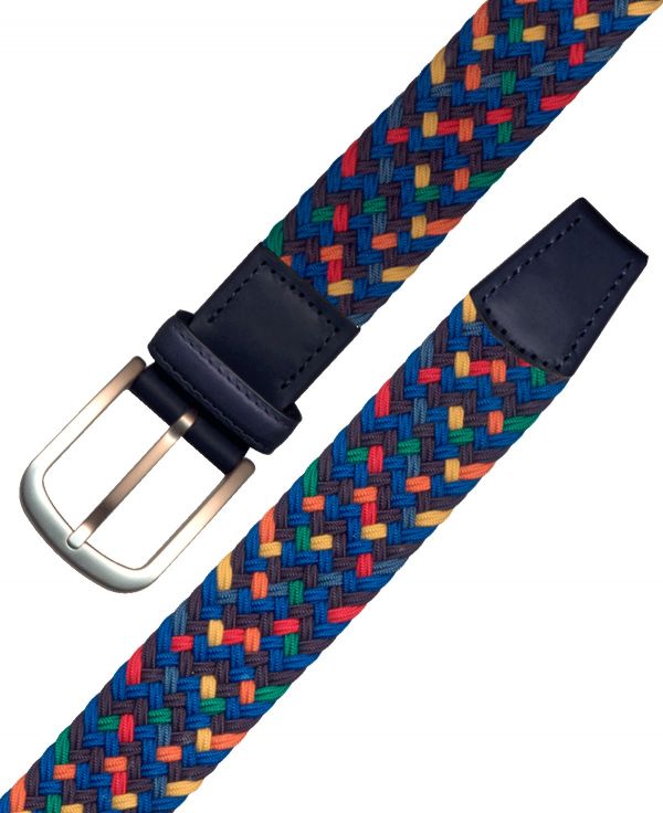 Let yourself be surprised by the Polychromatic elastic braided belt in 35 mm, which presents an explosion of bright and vibrant colors that is a real feast for the senses.