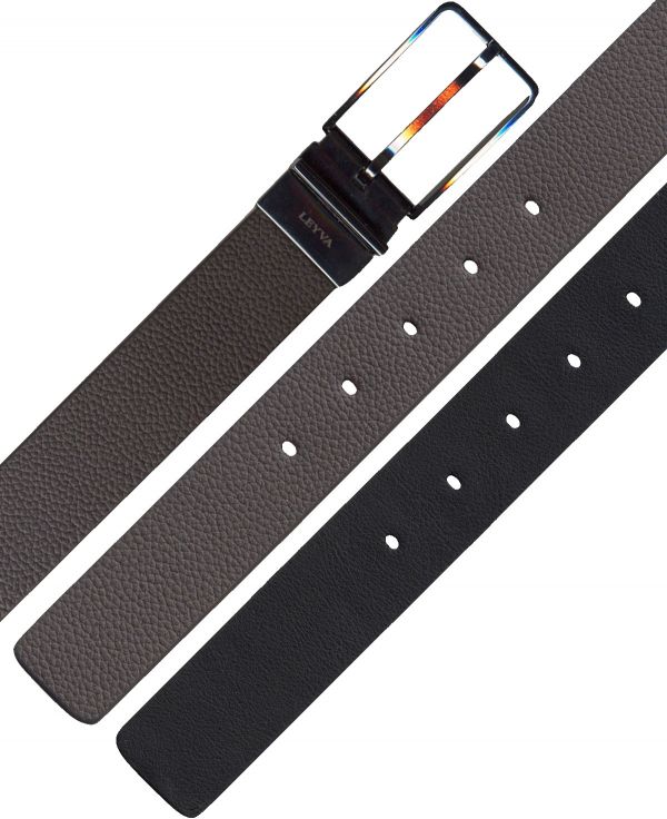 The Brack belt in 35mm is a versatile and sophisticated offering that delivers two styles in one. On one side, rich-textured dark brown Cervo leather; on the other, smooth black Nappa with a natural finish.