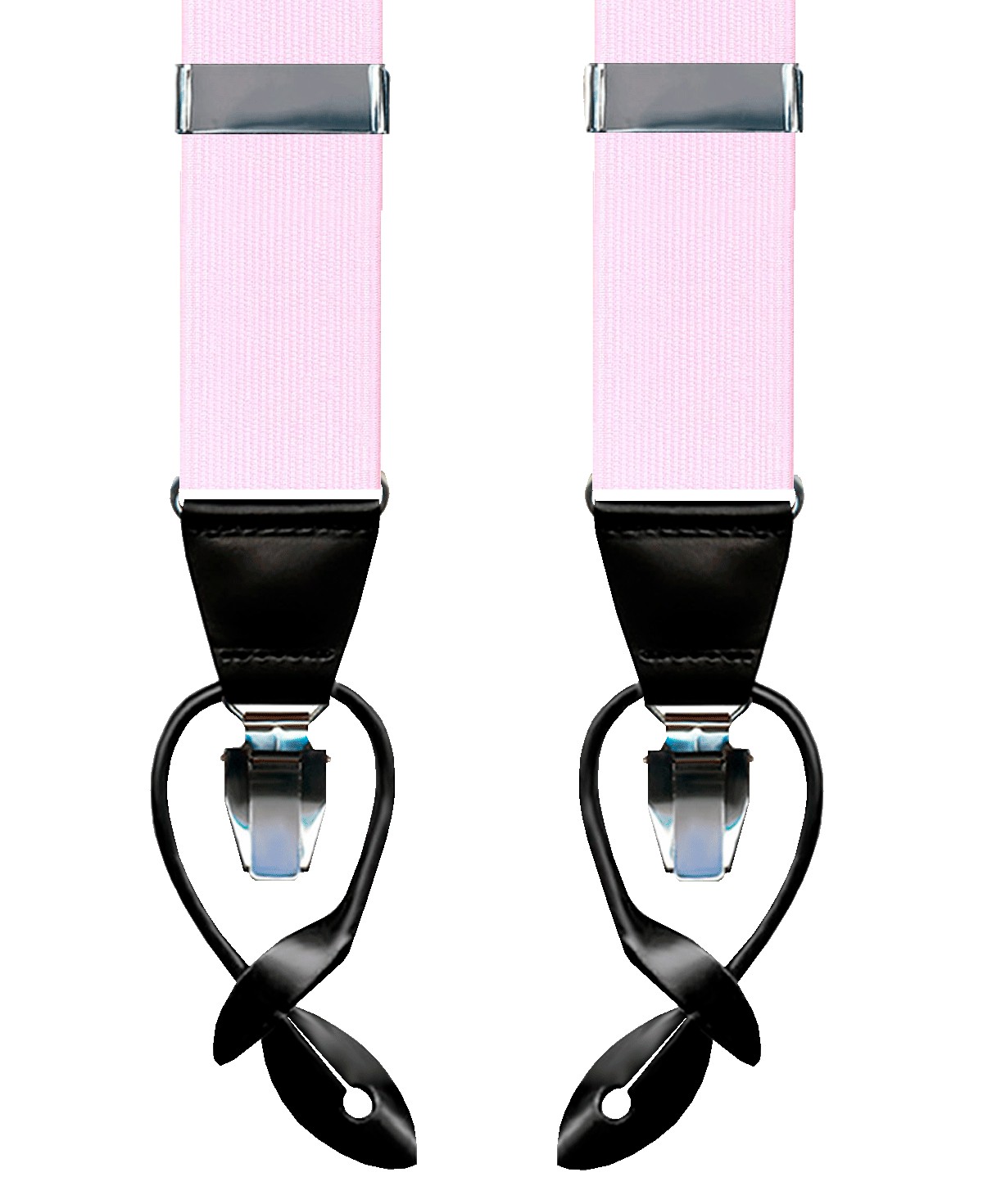 Pink elastic braces with closure system by means of nickel clamp. This elastic strap has a black leather finish. Made in Spain.