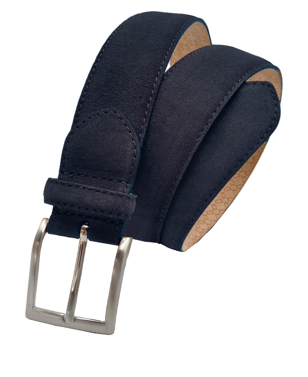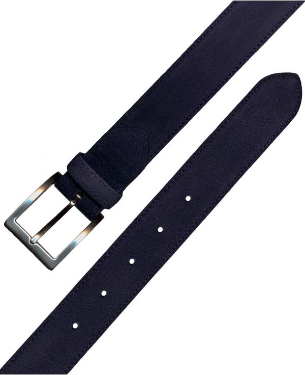 Cinturón clásico, alomado con costura al tono en 35mm de piel de vacuno afelpado. Dispone de sistema para acortar con tornillo posterior. Hebilla con acabado en níquel satinado. Fabricado en España.