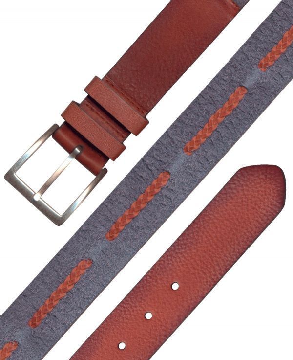 Destaca tu estilo casual con nuestro cinturón sport de 40mm de ancho con hebilla en plata inglesa de corte recto. Añade un toque de textura y carácter único a tu look con este modelo que combina serraje extra afelpado estilo 'Hairy Suede' con trenzado artesanal a juego con la piel abatanada de los extremos.