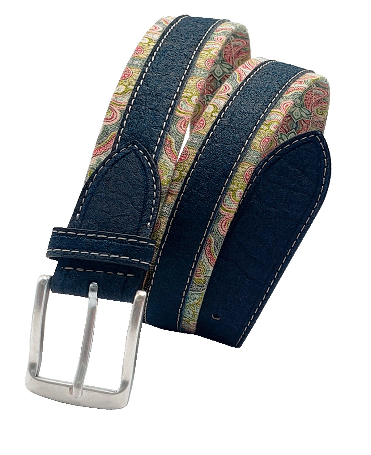 Presentamos el cinturón CACHEMIREco, un modelo clásico al estilo Regimental en 35 mm que refleja nuestra promesa con un mundo más sostenible. Este cinturón está confeccionado con loneta de algodón con certificado GOTS, estampada con elementos Paisley vegetales originales en una agradable gama natural, que contrasta perfectamente con las piezas de Piñatex marino.