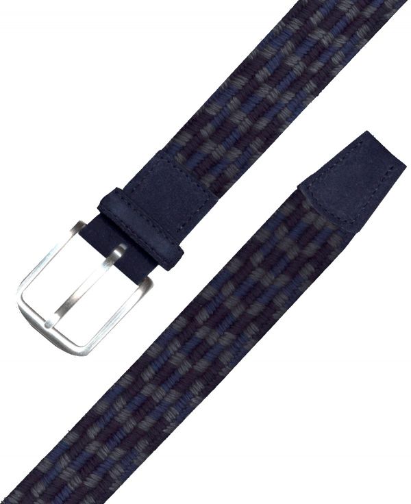 Descubre el cinturón IcySuede, un accesorio trenzado en 35 mm. Su trenzado rígido presenta una fascinante mezcla de secciones de hilos de algodón en una refrescante paleta de tonos fríos, donde el azul destaca de manera especial.