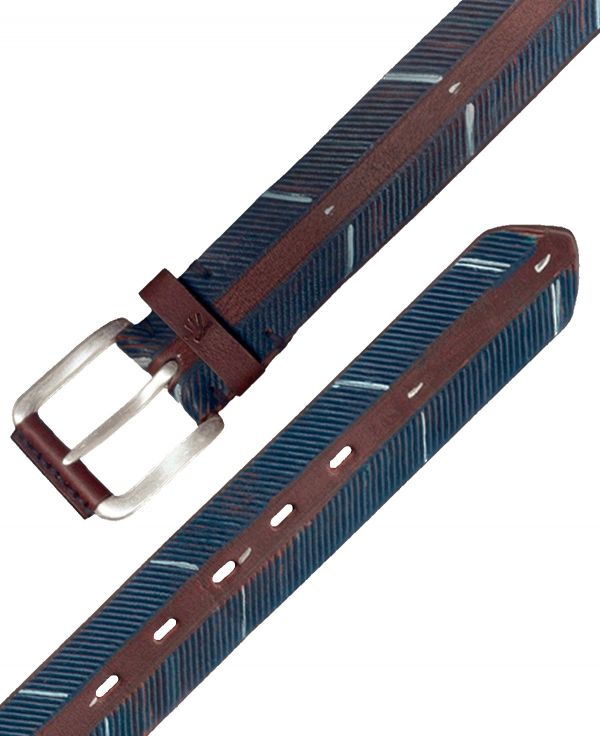 Cinturón al corte en cuero abatanado en 40mm grabado a fuego en ambos laterales, dejando el centro libre y remarcado con 2 filos a los extremos. Pintura acrílica aplicada a mano. Hebilla robusta en 40mm bañada en Plata Inglesa con aplique en piel.