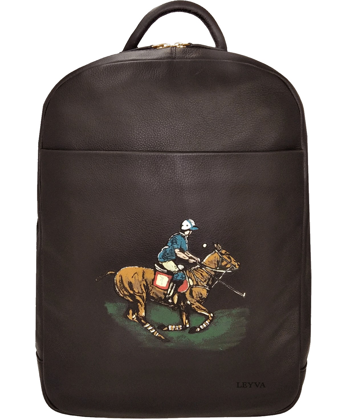 Esta sofisticada mochila de piel de primera calidad es una combinación perfecta de estilo y funcionalidad. Hecha a mano en España, destaca por su meticulosa atención al detalle y su exquisita artesanía. El grabado pintado a mano muestra una escena clásica de polo, convirtiéndola en una pieza única y exclusiva para los amantes de este deporte y de la moda de lujo.