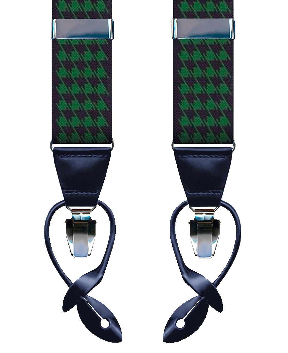 Tirantes elásticos multicolor, con sistema de cierre, mediante pinza de color níquel. Este tirante elástico tiene una terminación de piel en color marino. Fabricado en España.
